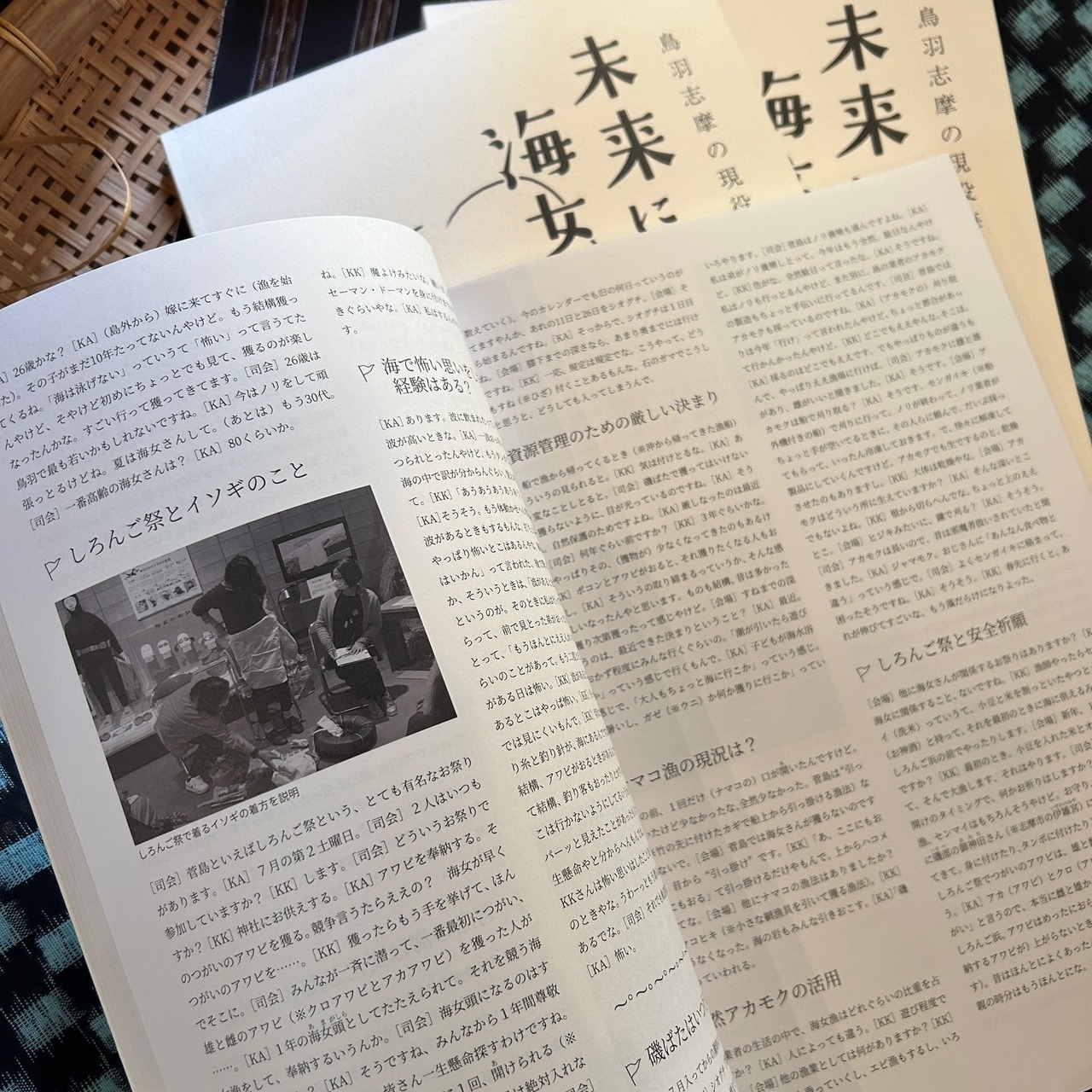 *2021年は鳥羽市の石鏡、神島、菅島、答志和具、国崎、2022年は志摩市の志島、越賀、船越、片田、安乗、波切、2023年は鳥羽市の相差、答志、志摩市の和具、御座、布施田地区の海女に登壇していただき、本文にはその内容が掲載されています。
