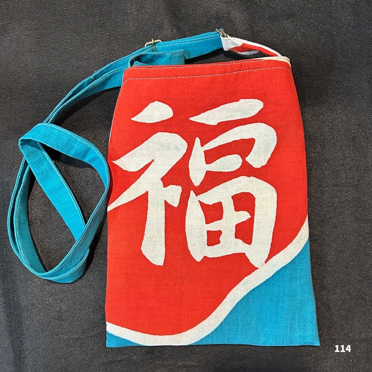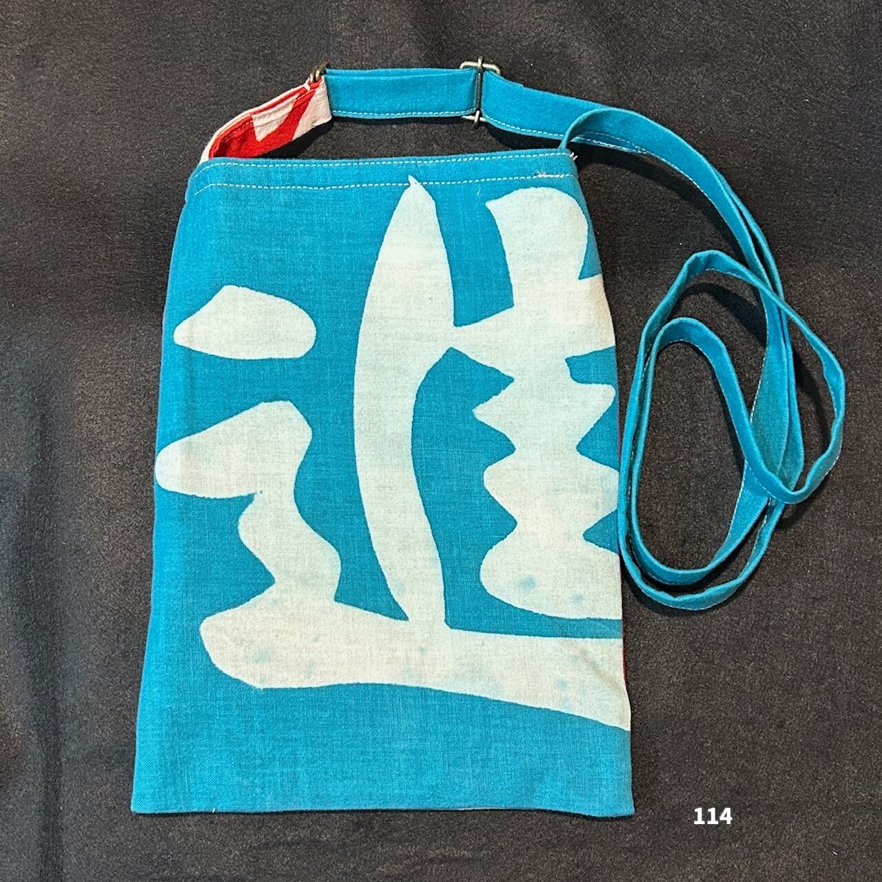 またお正月や祝日にも掲げられる縁起物です。役目を終えた大漁旗を使ってサコッシュにリメイクしました。長財布などがすっぽり入るサイズです。