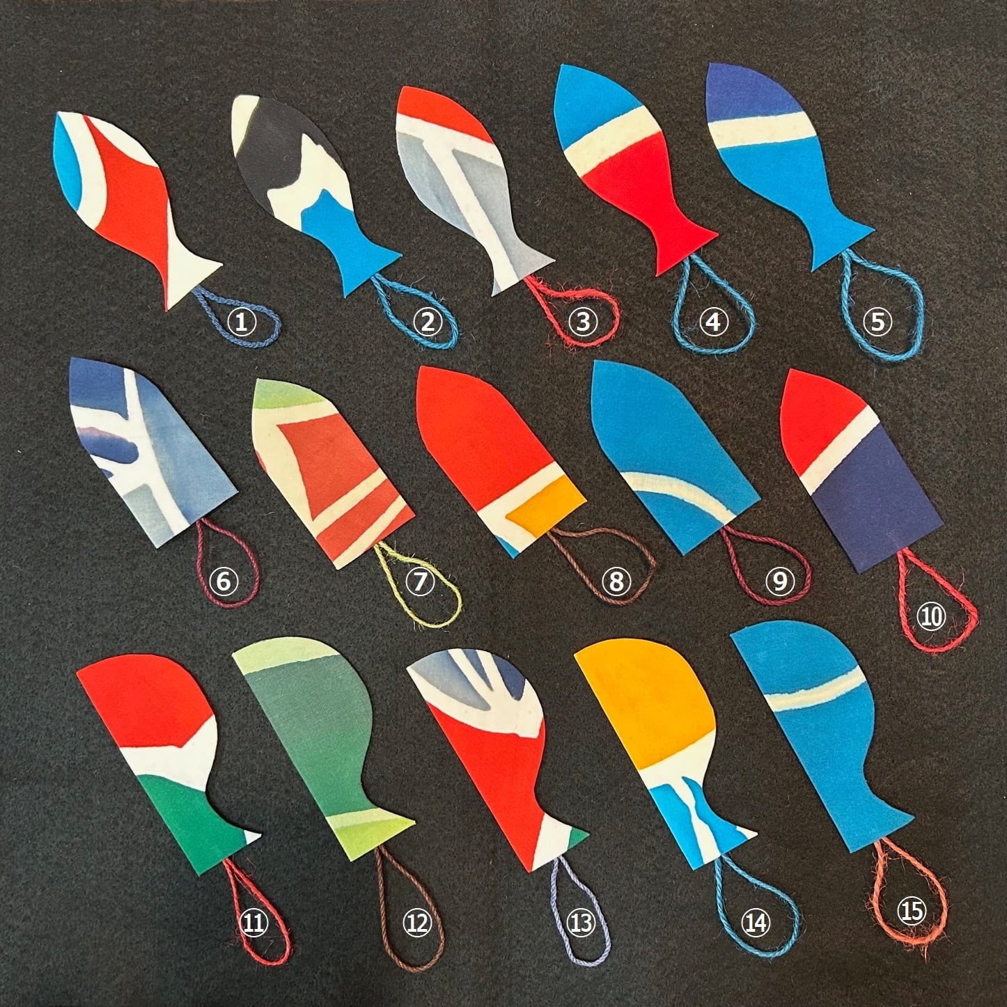役目を終えた大漁旗を再利用して作りました。