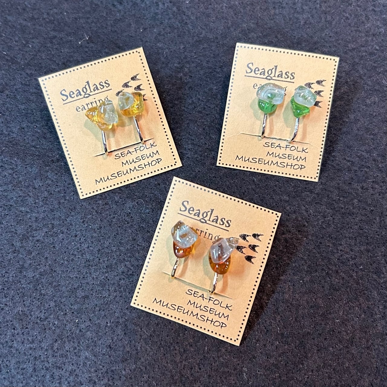 海辺で拾われたシーグラスを厳選し、丁寧に加工して作られています。形や色合いに微妙な差異があり、まさにオンリーワンの存在感を放つアクセサリーです。