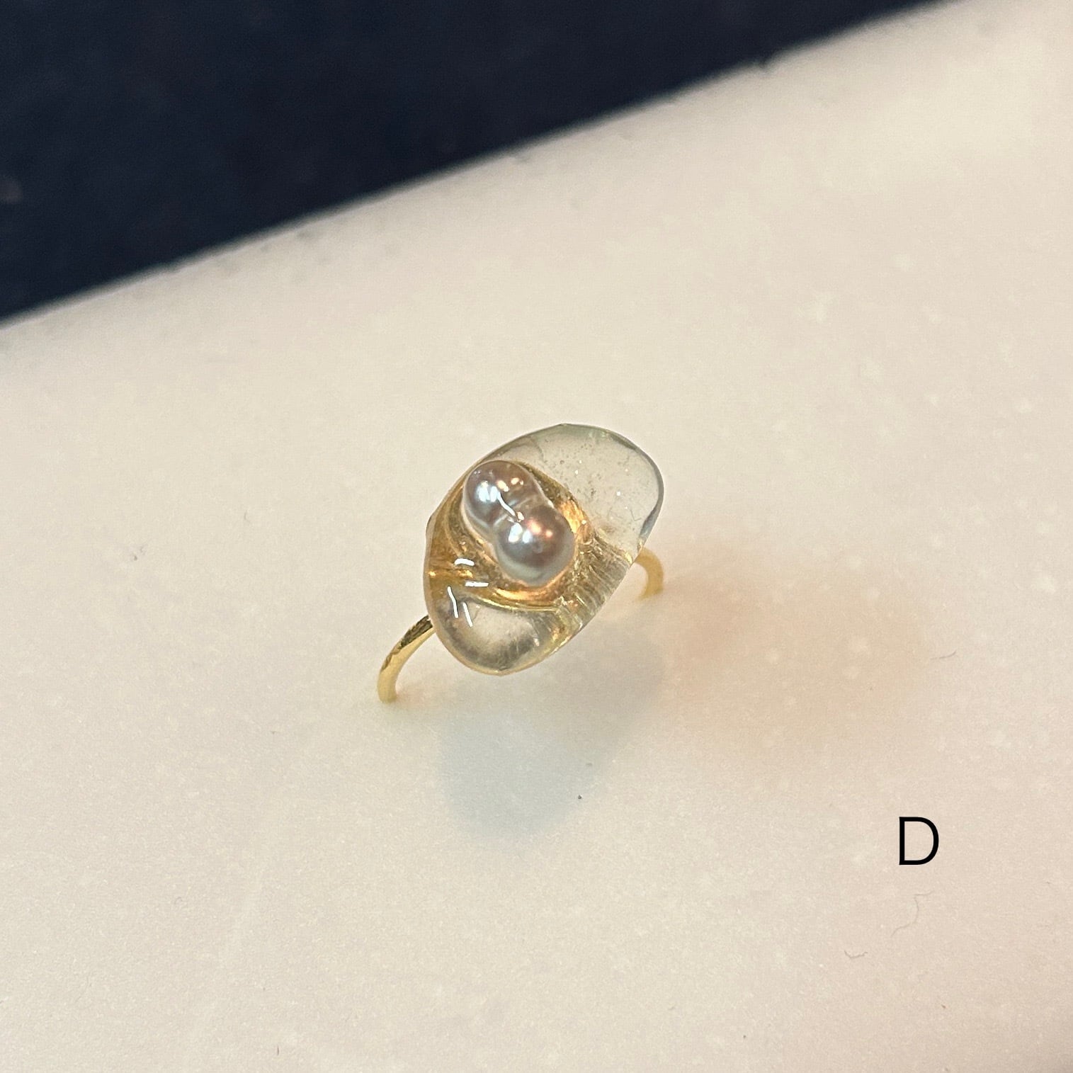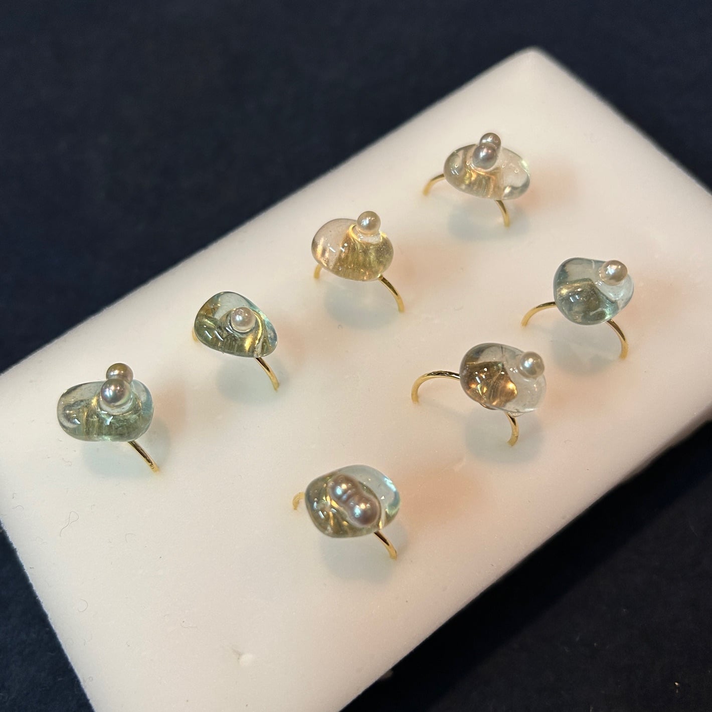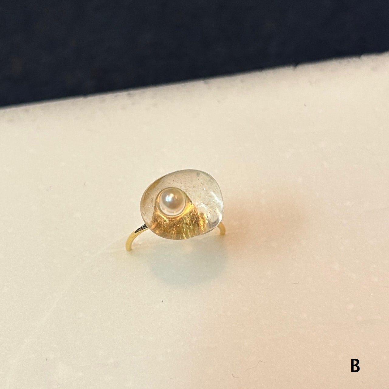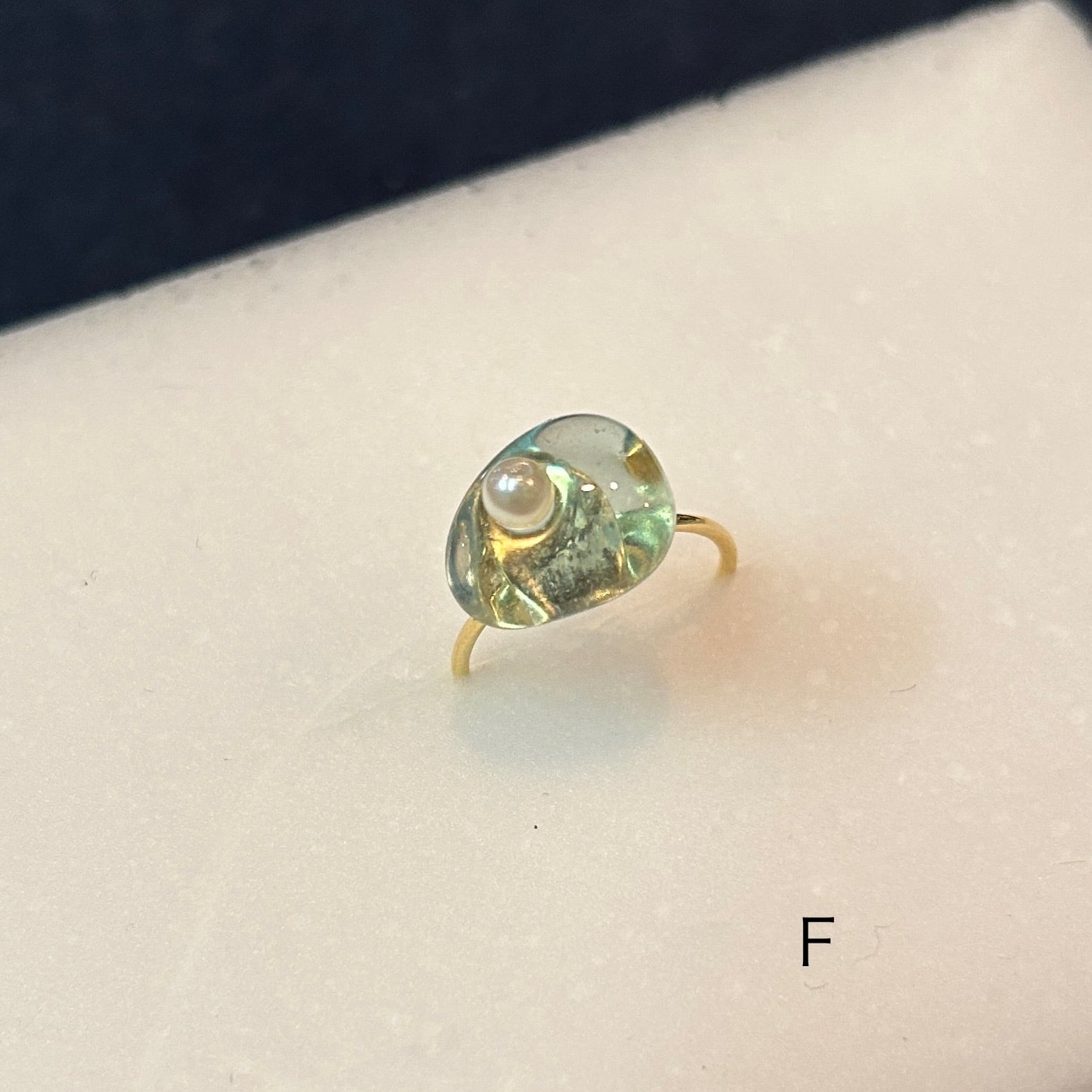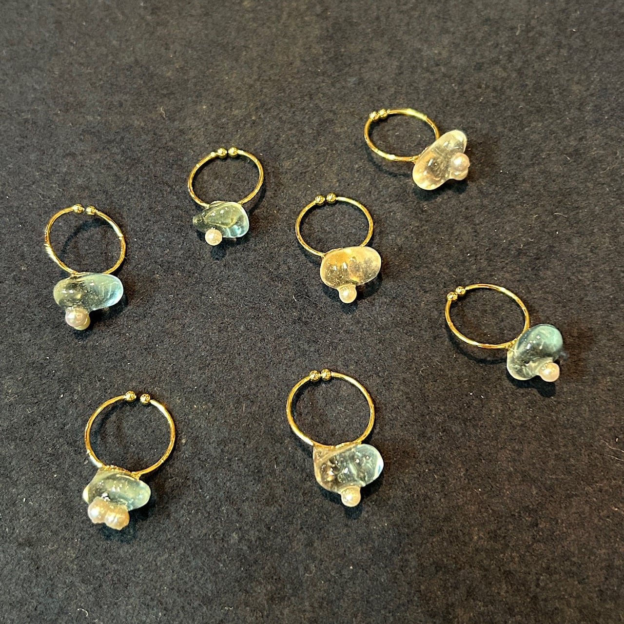 シーグラスと小さな真珠を組み合わせてリングを作りました。