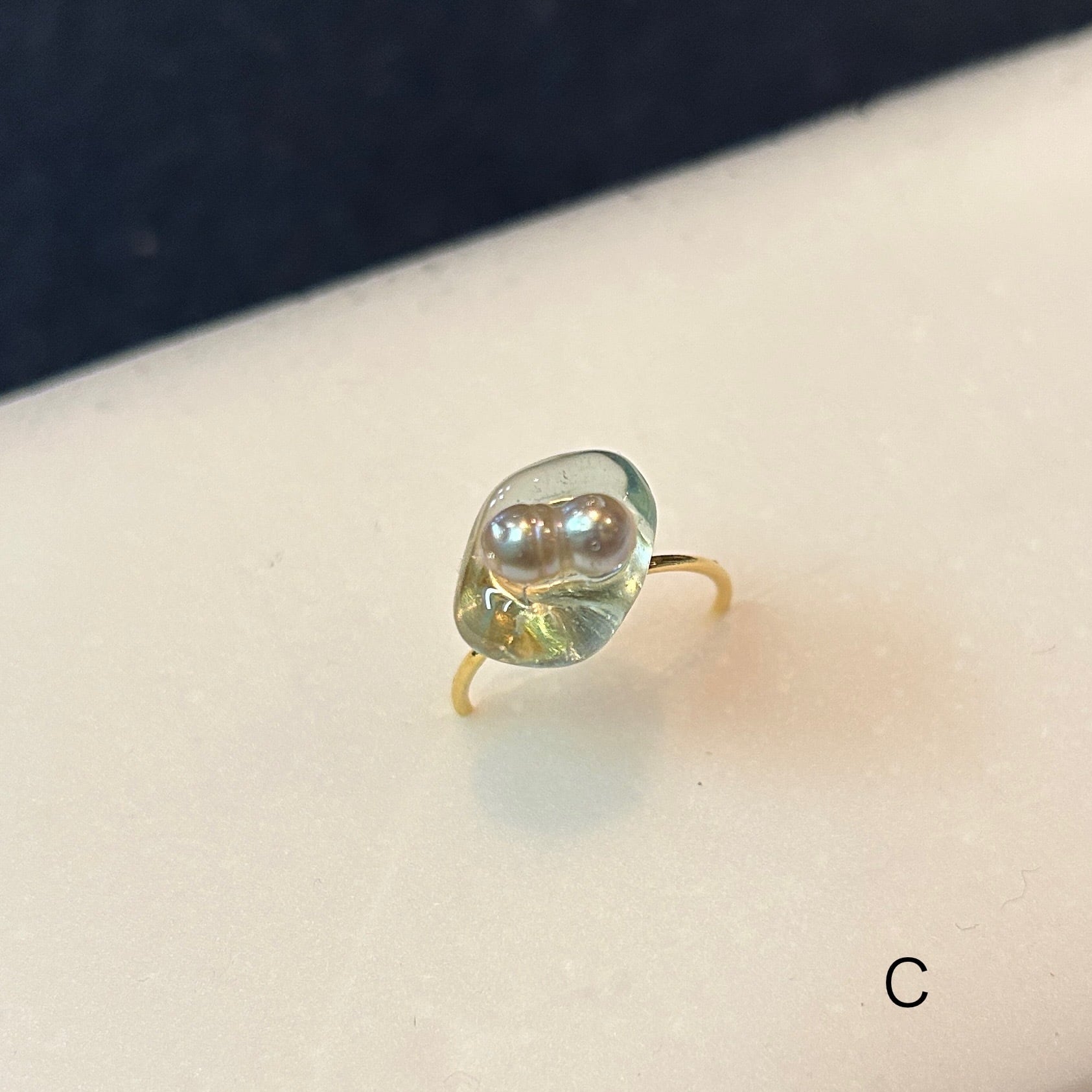 シーグラスとベビーパールのリング うみはくオリジナル
