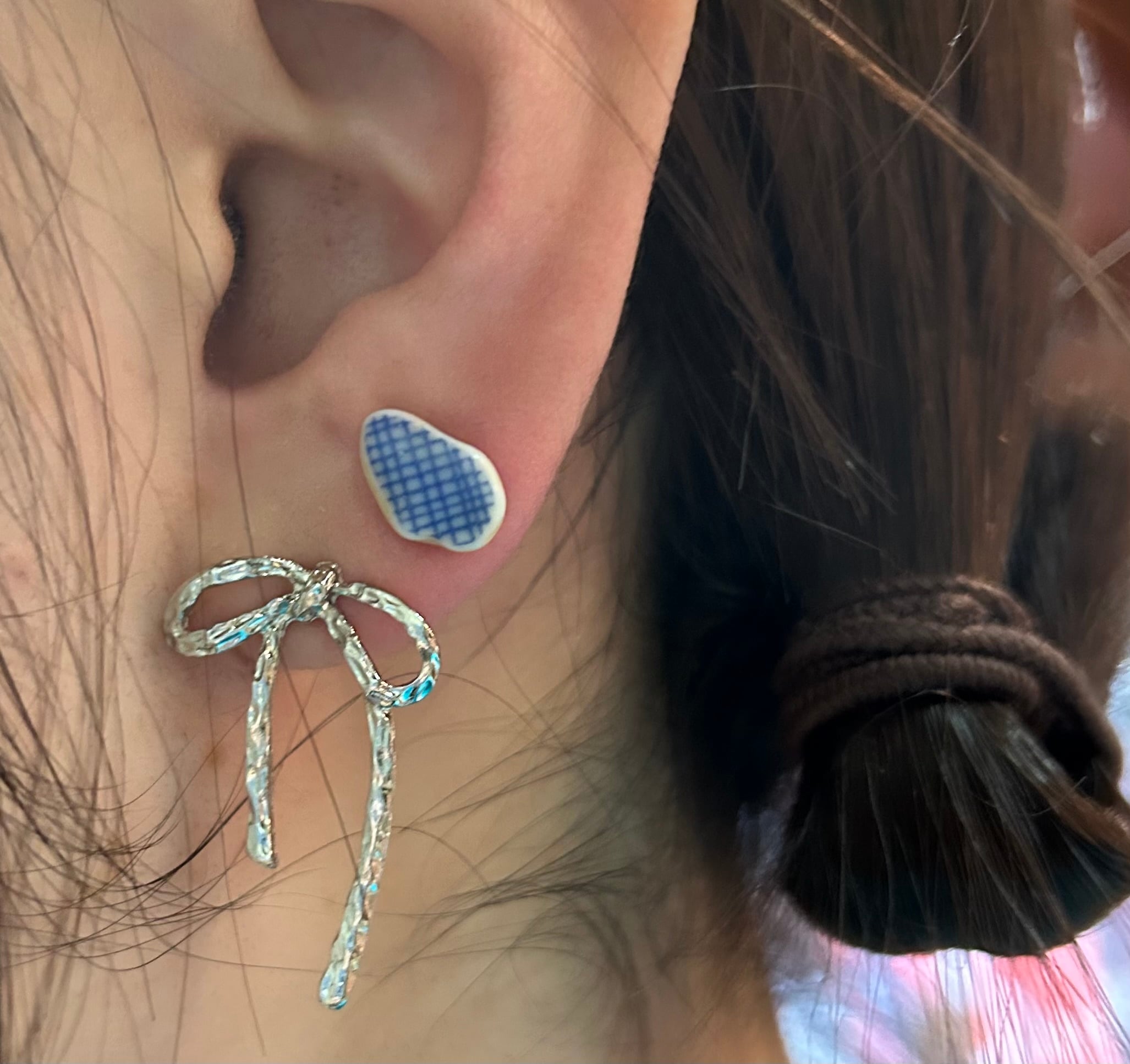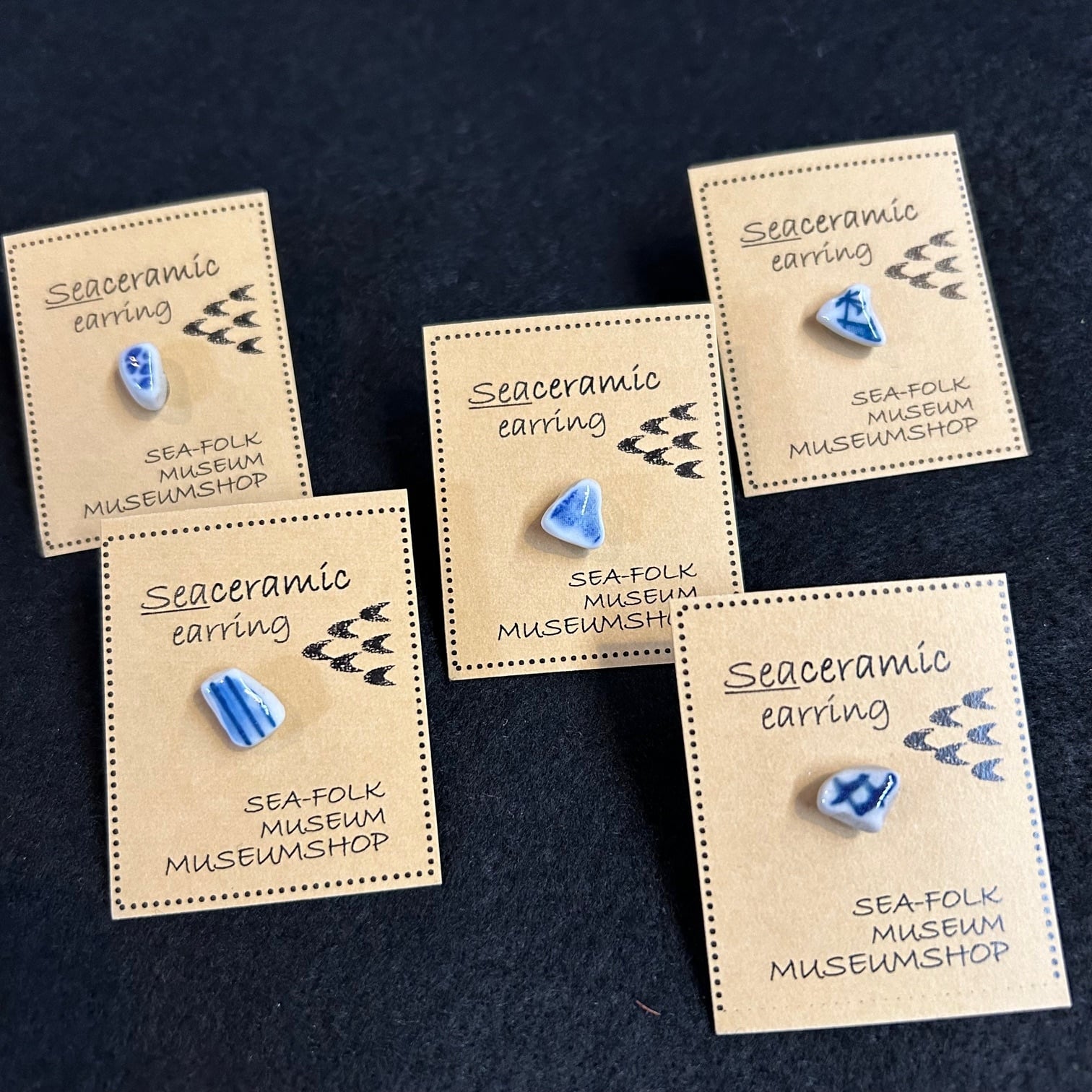 海辺で採取したシーセラミック(陶片)をレジンでコーティングしピアスにしています。