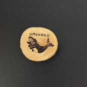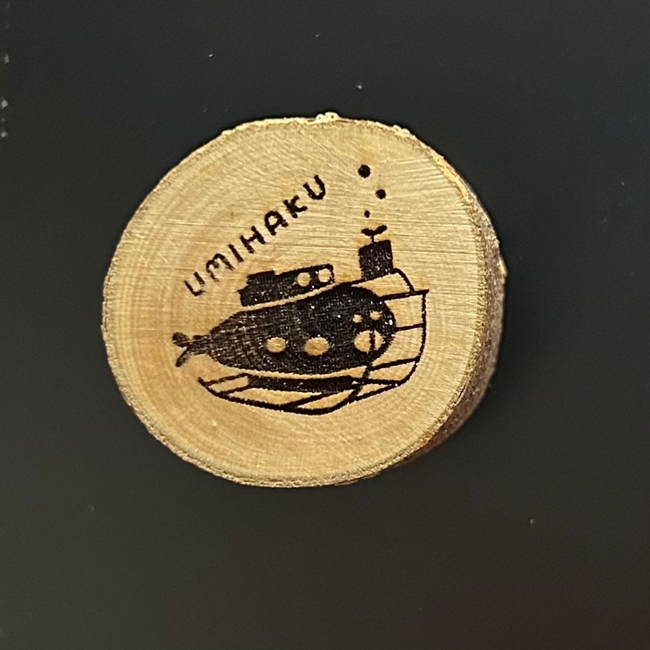 カットした丸太に、海の博物館の建物や展示に関連したデザインをほどこしました。